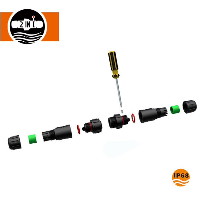 M14 Waterproof Male Male Konektor, 2 pole screw type waterproof connector, with screw terminal for easy connection.